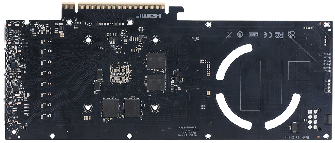 背面设计同样简约,大部分面积被黑色金属背板覆盖,加固PCB的同时也能被动散热。