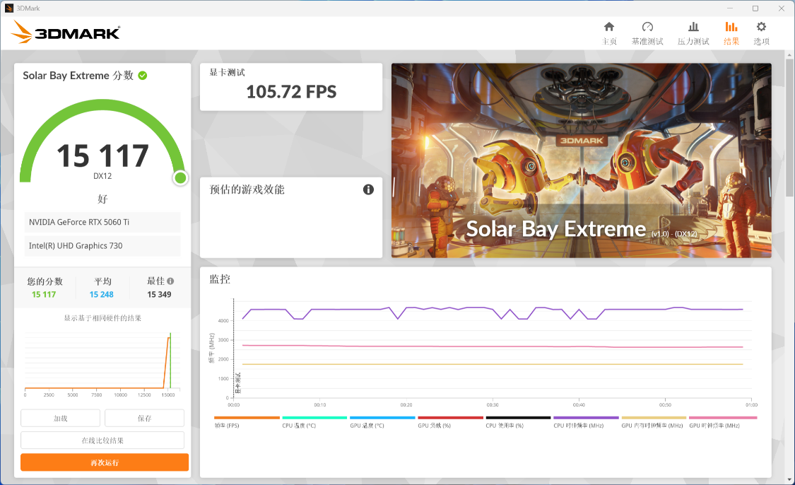 Solar Bay Extreme跨平台光追测试,显卡得分15117分;