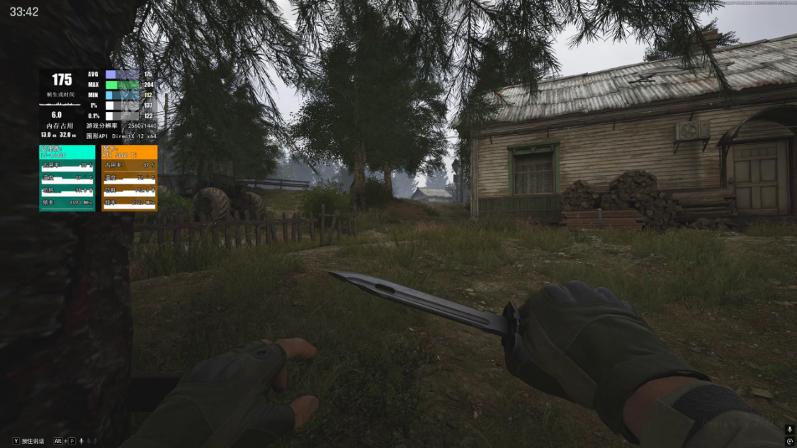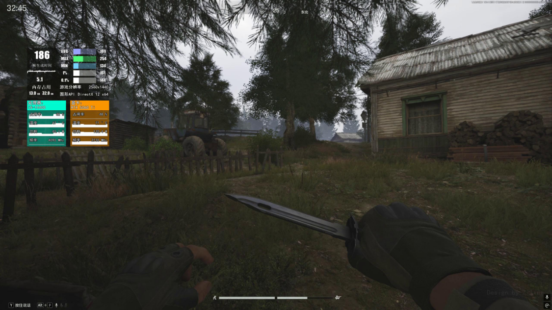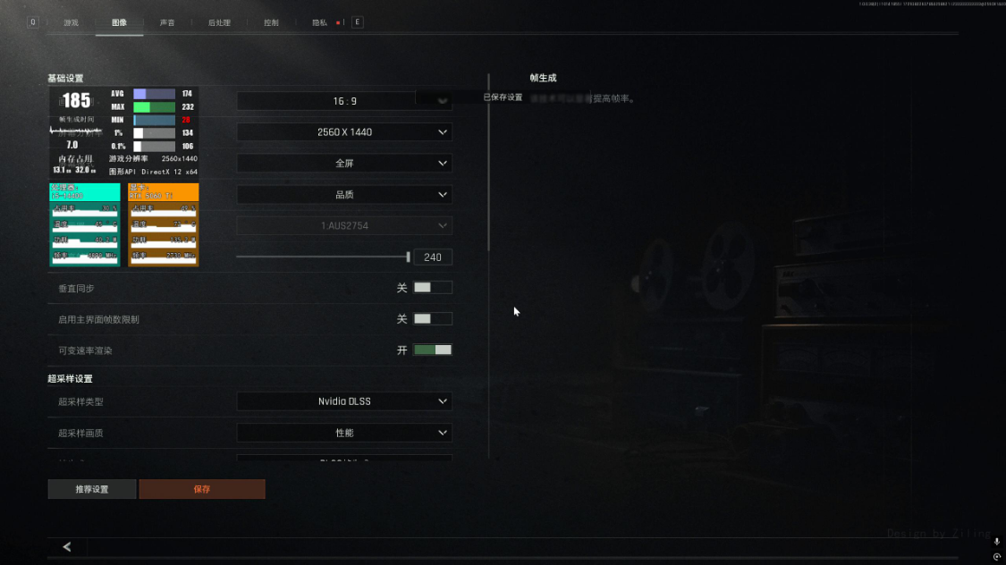 《暗区突围·无限》,2K分辨率,品质画质,开启DLSS帧生成设置,DLSS为性能模式下,在农场地图中,游戏实际帧数为180 FPS左右,DLSS为质量模式下,游戏实际帧数为190 FPS左右;