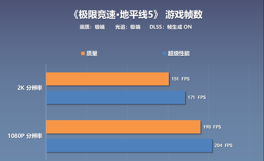 《极限竞速·地平线5》测试,极端画质,极端光追,开启DLSS 3.0,游戏在不同DLSS档位和分辨率下的帧数表现如图