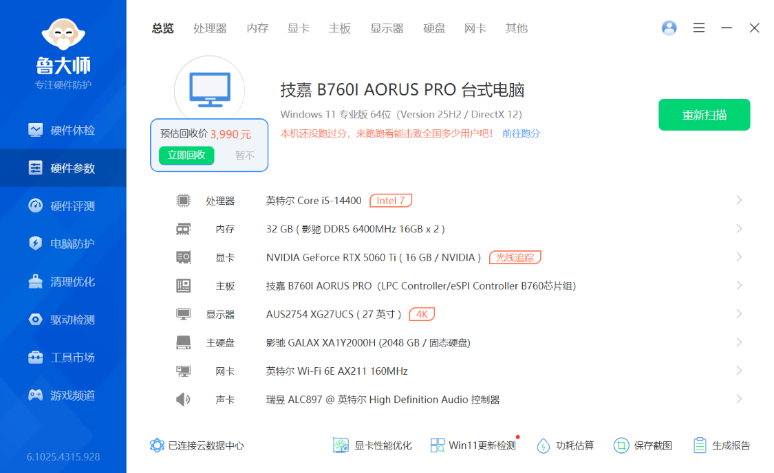 完整配置单:Intel i5-14400处理器、技嘉B760I AORUS Pro 迷你雕主板、影驰RTX5060Ti无双MAX显卡、影驰星曜D5-6400MHz 16G*2内存、影驰星曜7000Plus 2T M.2固态硬盘、超频三降龙RC600-67白色下压式风冷(风扇更换为利民TL-C12015)、闪鳞S400 Pro黑色机箱+PCIe5.0延长线、神雕SFX 650金牌全模组电源、利民TL-C12015散热风扇*3...