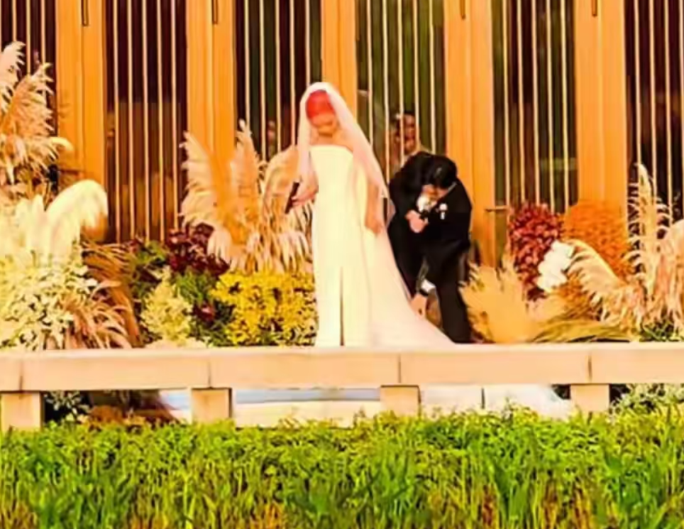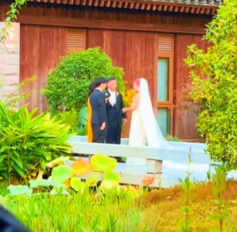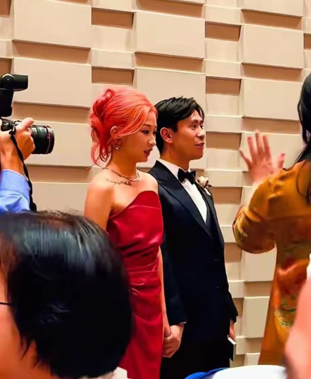婚礼现场,34岁的刘一丝以一头活力四射的红发惊艳亮相,作为女主角尽显夺目光彩。