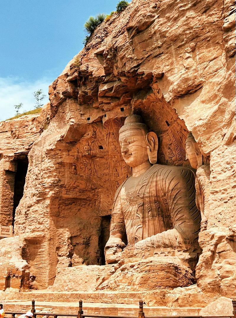 最盛大的“国家工程”:云冈开凿始于北魏文成帝和平元年(460年),由高僧昙曜主持,动用全国能工巧匠,历时60余年建成。现存主要洞窟45个,造像5.9万余尊,最高的17米,最小的仅2厘米,“规模仅次于敦煌莫高窟,但集中性、完整性远超其他早期石窟”;