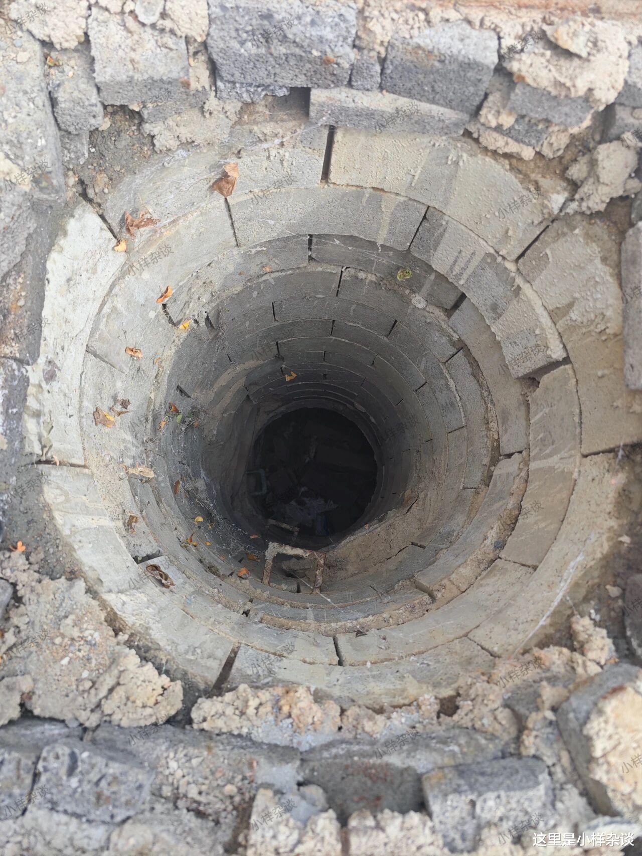 而这个井口的深度呀,个人估计5米左右,掉下去的话,没事是不可能了。