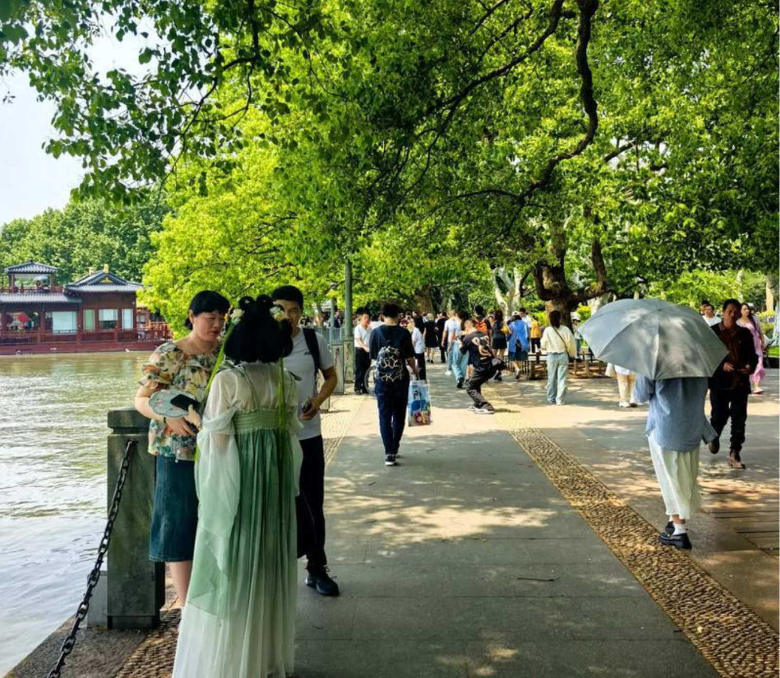 清明假期的西湖,风都是热的,断桥上的人潮里,最显眼的除了举着自拍杆的游客,就是那些挂着相机、眼神犀利的大学生“陪拍师”。