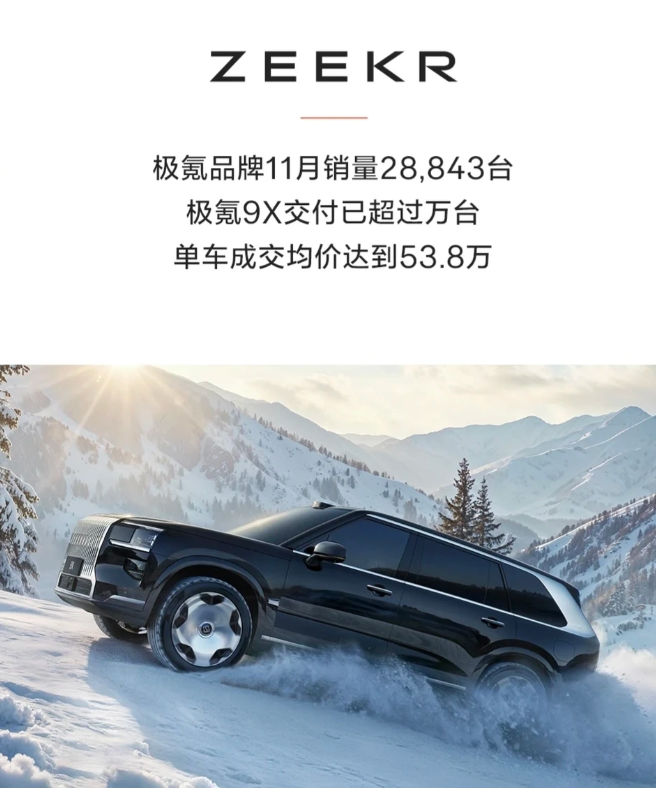 除了品牌与用户关系之间的改善,销量回升更是极氪一路向好的铁证。在11月份,极氪销量迎来大涨,当月销量达到28843台。而在下半年推出的两款新车,焕新极氪001和极氪9X更是上市即爆款。其中,焕新极氪001上市仅47小时锁单量便强势突破1万台,展现出中国猎装车时代开创者的强大实力。