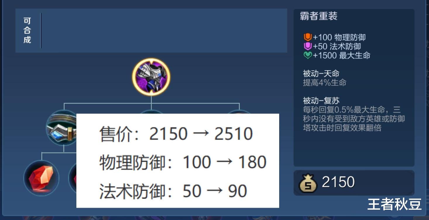 不死鸟新增100点物理防御,成为一件双抗防装。回血型英雄如白起,曹操,程咬金的出装优先级会提前出。