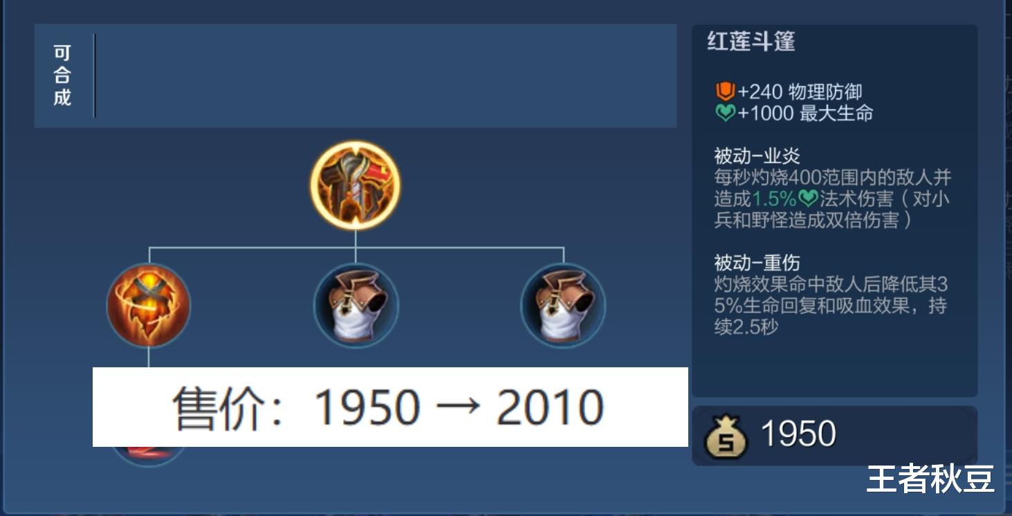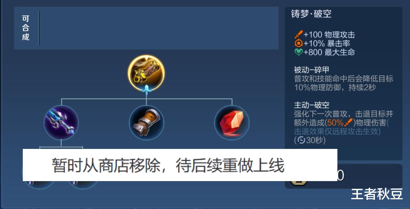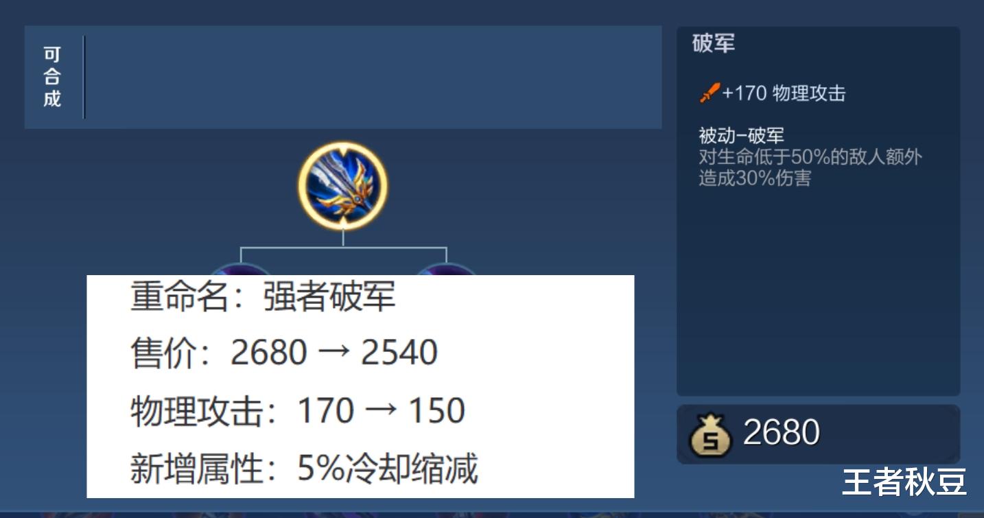 破军价格继续下降到2540金币,代价是物理攻击降低20点,不过新增了5%的冷却,属于加强。