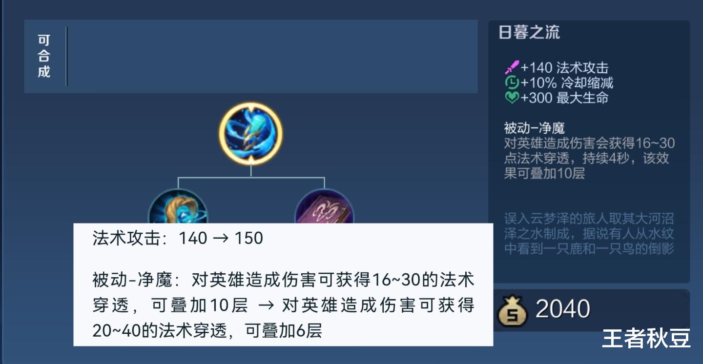 法术攻击力提升10点,但是被动的法穿从最高300降低到最高240,虽然更好叠加被动,但是伤害上限降低了,60点法穿远远强于10点法术攻击。