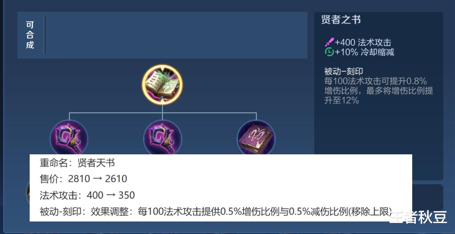 大书的价格降低,法术伤害降低了50点,可是移除了增伤上限,总体后期可期。