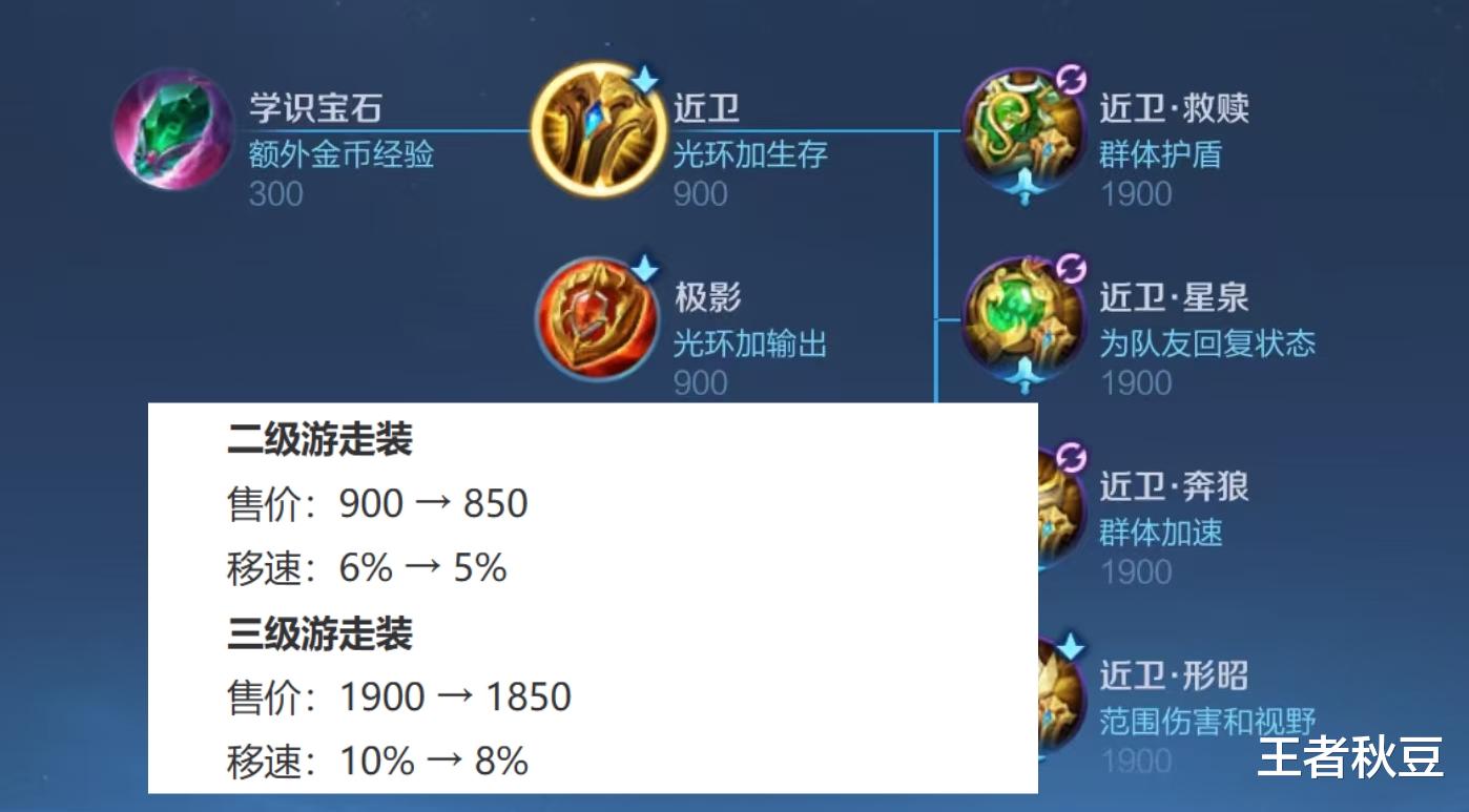 降低售价的同时减少了移速,对于支援为主的辅助来说,移速减少不利于支援。不过由于大环境下鞋子的移速也减少,双方辅助也减少移速,对局影响不大。