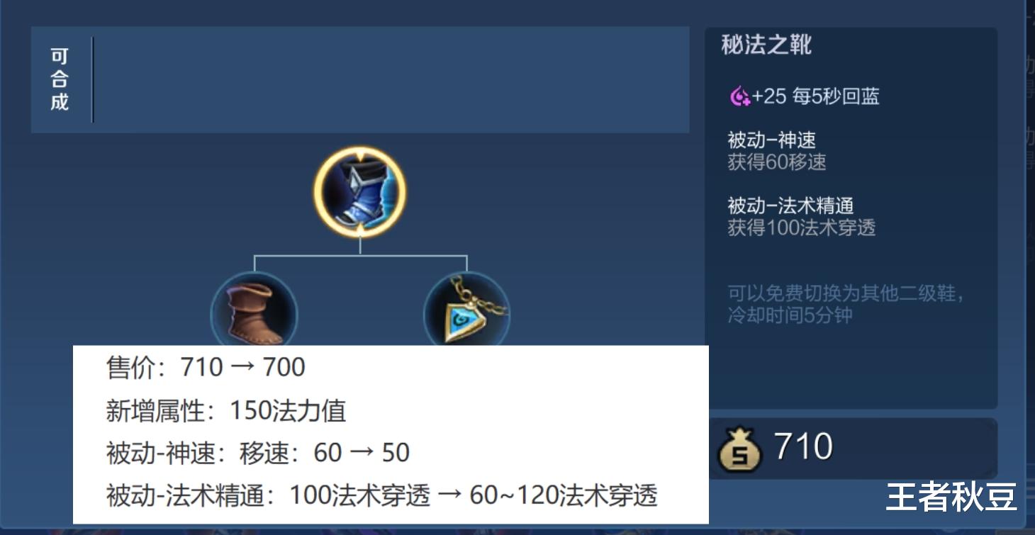 新增150点法力值,法术穿透前期降低40点,后期增加20点。增强了前期蓝量,由于后期都会换鞋子,伤害方面属于削弱。