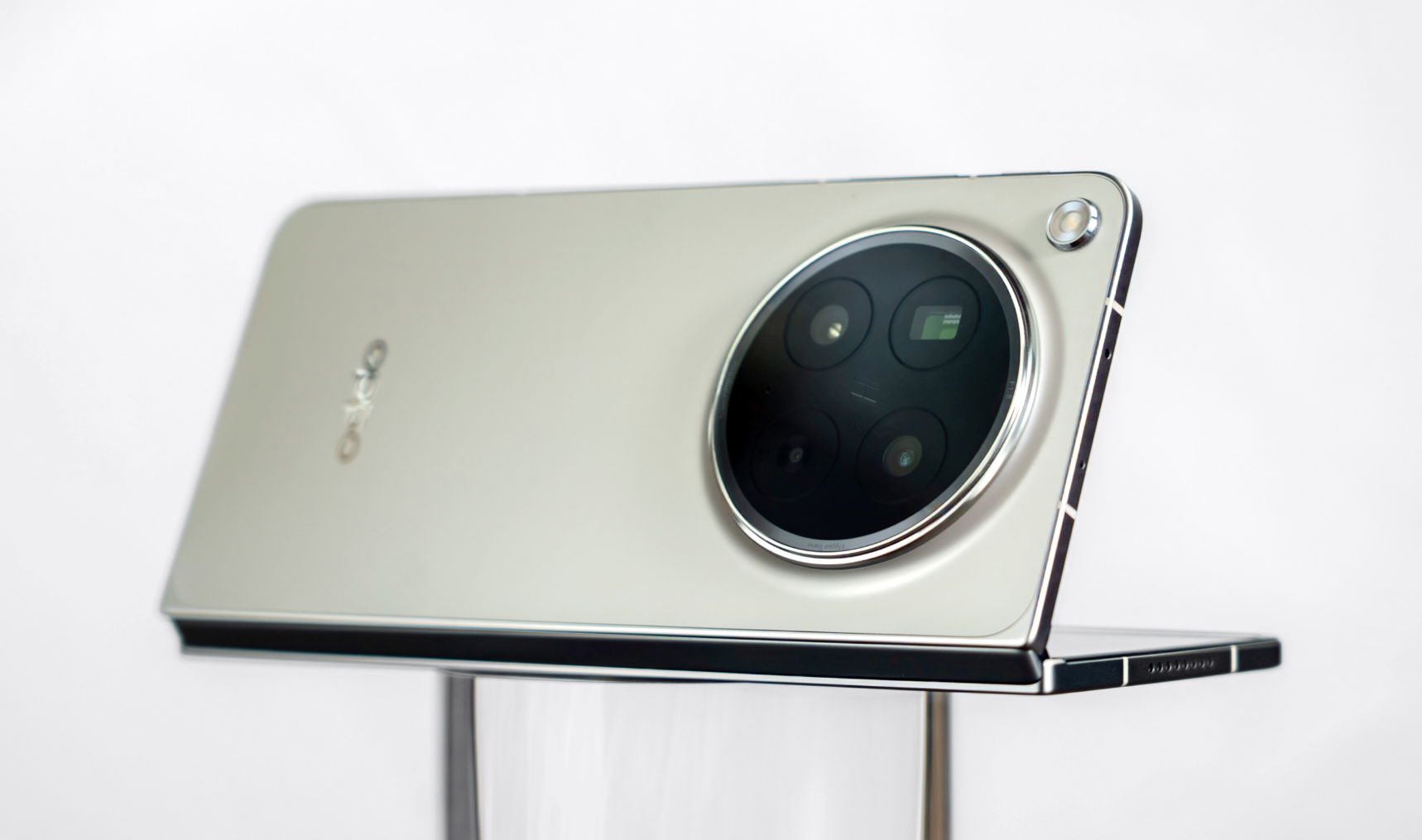 钛合金天穹铰链采用行业首创的仿生对称四轴结构,相较于传统三轴铰链扭力提升20%,开合手感丝滑如一。更关键的是,OPPO开创性地将芯片领域的精密加工技术应用于铰链制造,带来行业首创的“芯片级高分子3D打印技术”,使铰链中板平整度至高提升75%。