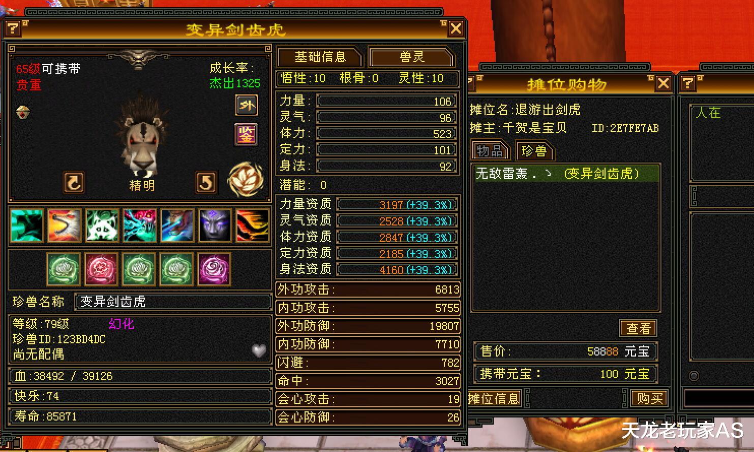 还有这只4160的精明剑齿虎,售价58888元宝!