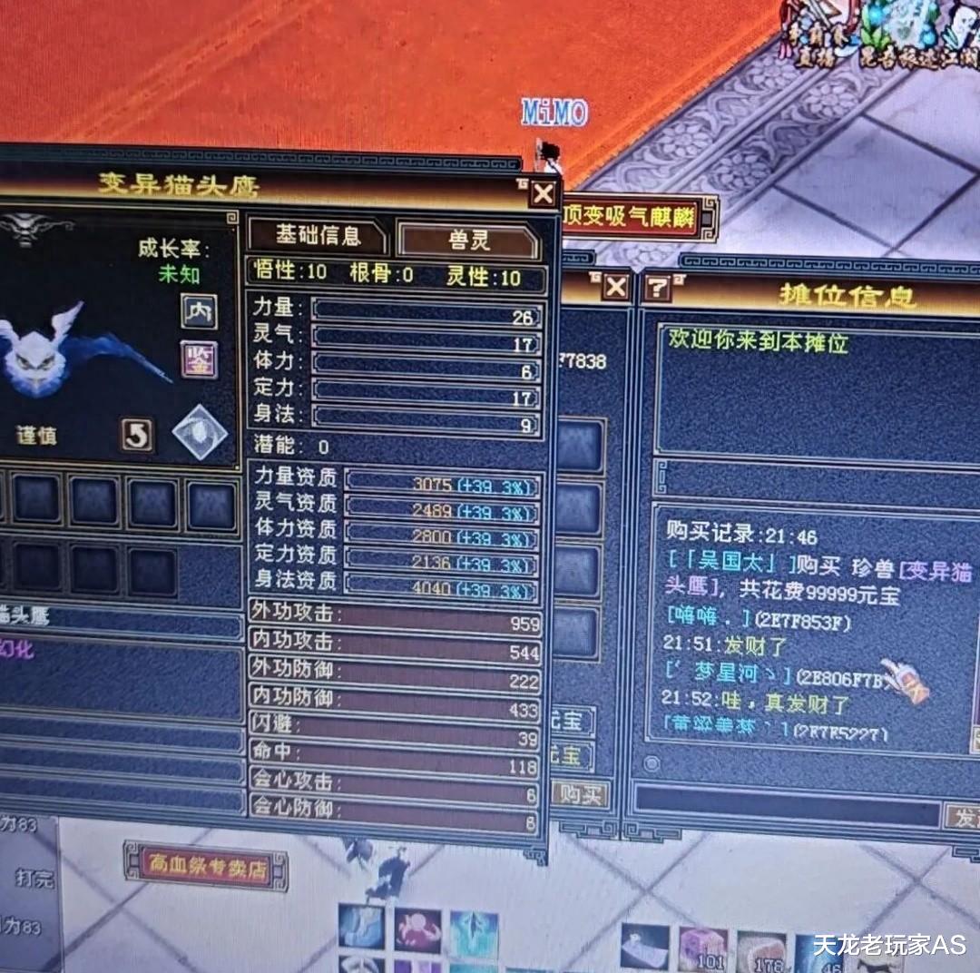 那一只极品猫头鹰能有多值钱呢?一只双十4040的谨慎猫头鹰,成交价能高达99999元宝?