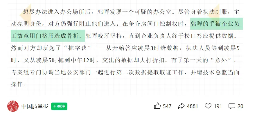 甚至被市场监管总局发现后,使出各种手段拒不配合调查,甚至是暴力抗法。