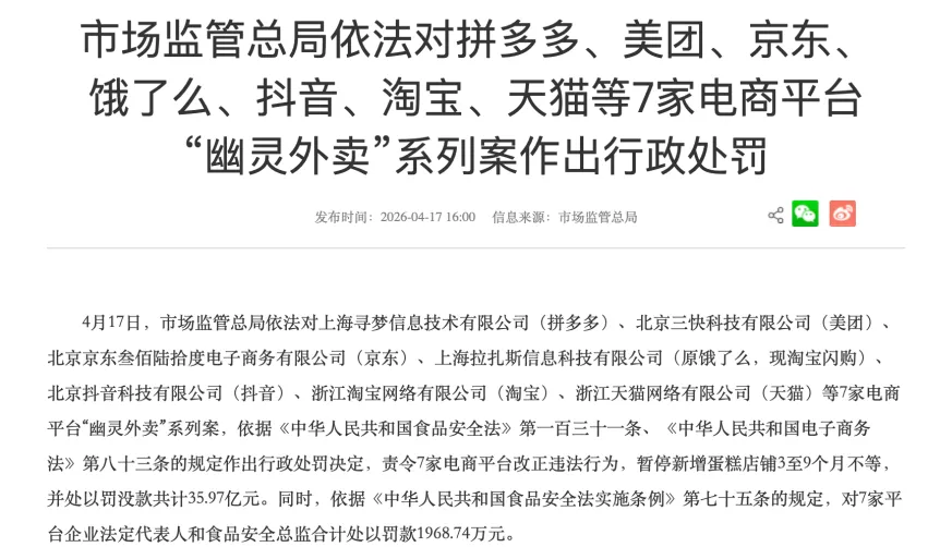最近,官方正在罚没七大电商平台近36亿,理由是这些外卖平台不仅纵容幽灵店铺,还将咱们的订单一键转单,来回倒卖!