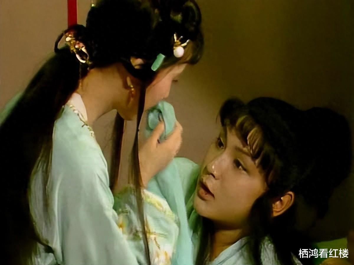 “黛玉因看见宝玉左边肋上有钮扣大小的一块血渍,便欠身凑近前来,以手抚之细看……黛玉便用自己的帕子替他揩拭了。”——黛玉是主动摸他的脸、用自己的手帕替他擦脸的。