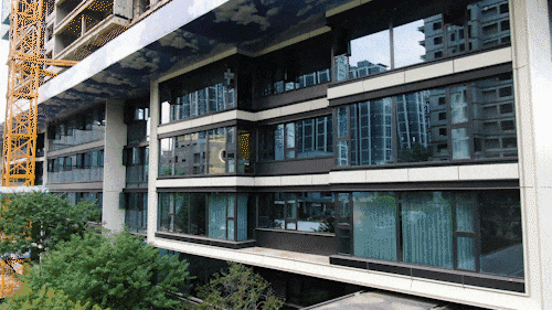 站在会所一层,可以看到,金水印二期部分外立面已经初露锋芒。