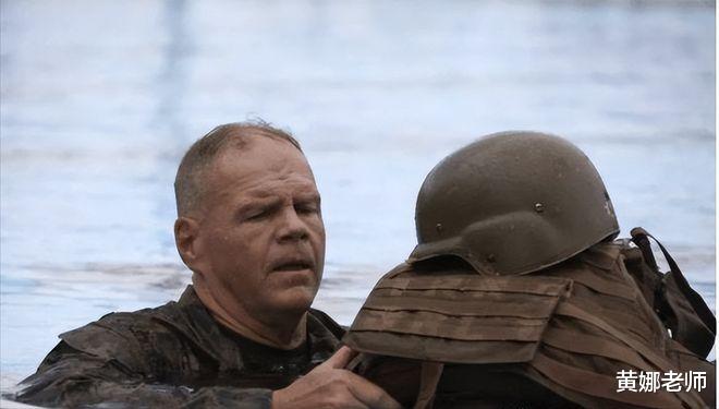 就看下面的照片,这是2018年,美国海军陆战队司令罗伯特·奈勒上将正在接受每年一度的考核——要从5米高台跳入水中,穿上全套野战服并携带武器,在规定时间内,深水中游25米、踩水四分钟、另一个25米距离的游泳,同时完成一系列水中规定的动作。