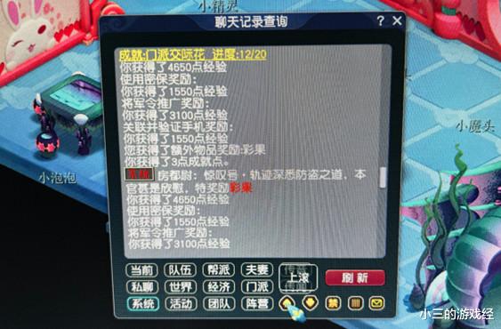 大家现在还会坚持去房都尉那里进行答题吗?那么大家有没有在房都尉那里获得过额外的道具奖励啊,上面这位玩家在房都尉那里就直接获得了一个彩果的奖励呢,因此还获得了3点的成就点呢,如果是在梦幻西游早期的时候,有人在房都尉那里答题获得彩果肯定会引起该服务及其他玩家的鄙视。现在就不一定了。现在有人获得了彩果后在世界频道上根本就引不起反应,因为现在的结果已经不是什么值钱的东西了,大家都看不上了。