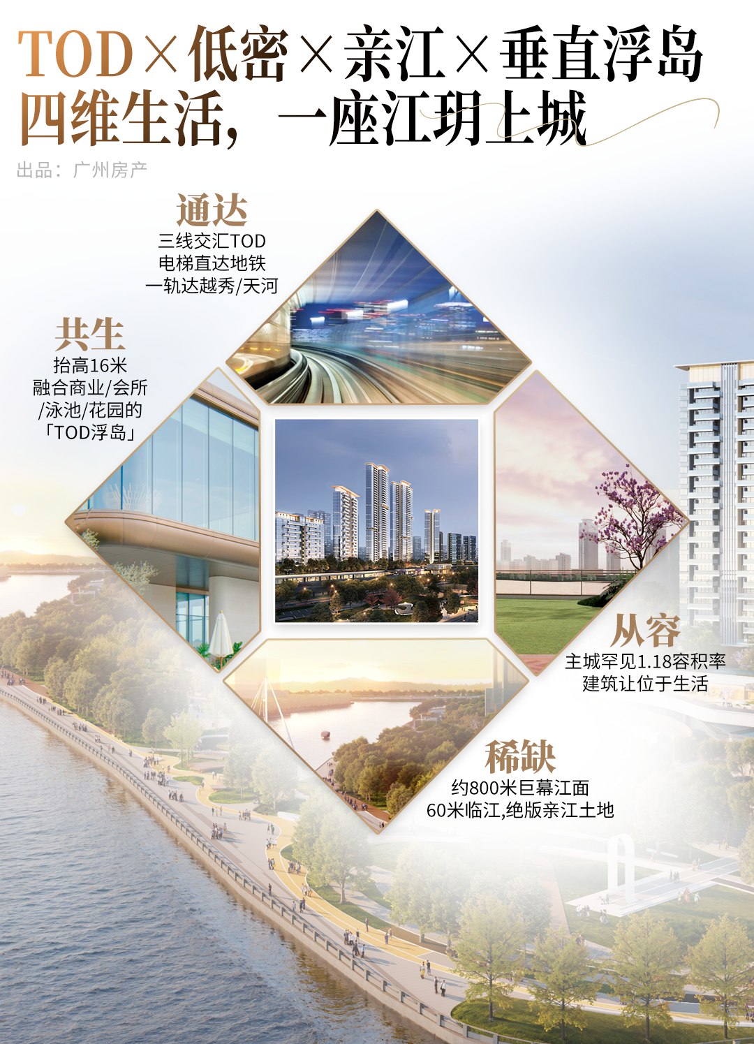 江玥上城,一个留给广州改善的极致江景盘——高效通勤、自然生态、低密舒适,学铁商配齐,无需将就。
