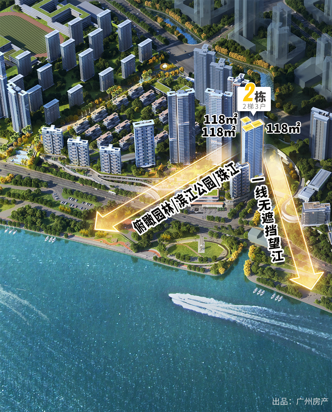 要知道,广州江景盘有一个潜规则:头排无遮挡的位置,永远留给大户型。