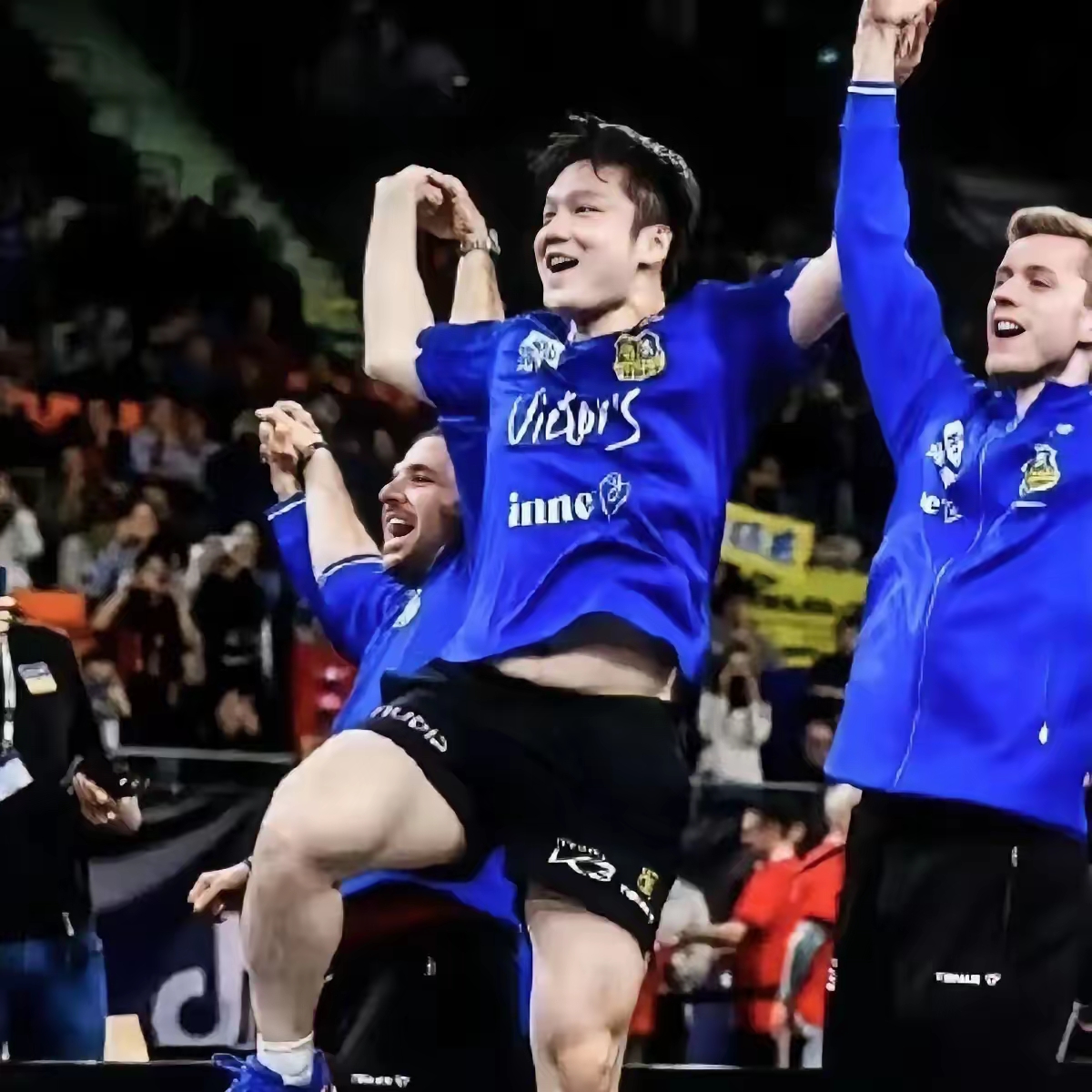 弗朗西斯卡两次抓起金纸撒到樊振东头顶,搞怪又暖心;他笑着清理衣领里的彩带,转头就把奖杯塞给队友,让每个人都摸一摸、举一举。当球队老爷子站到最中间时,他站在角落鼓掌,眼里的笑意比谁都真。