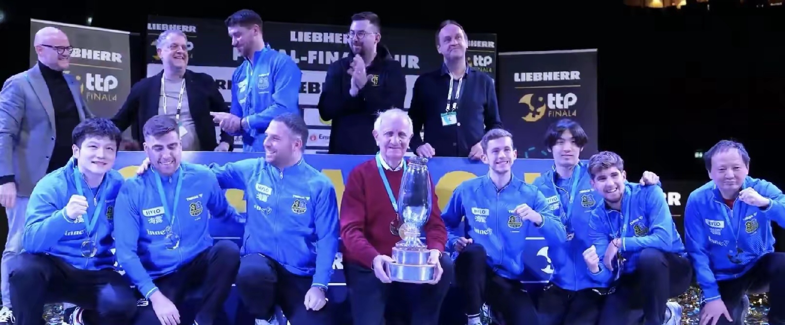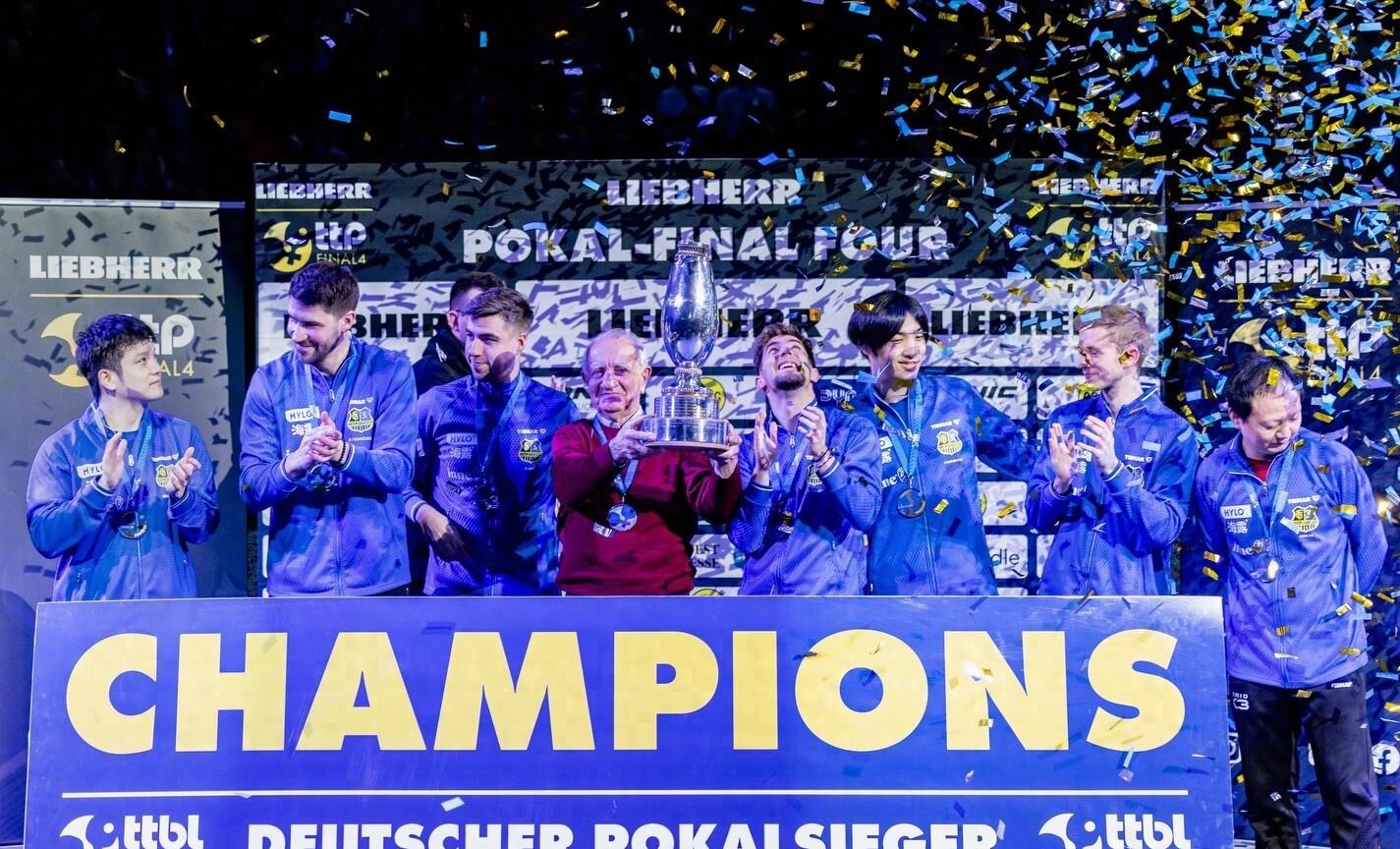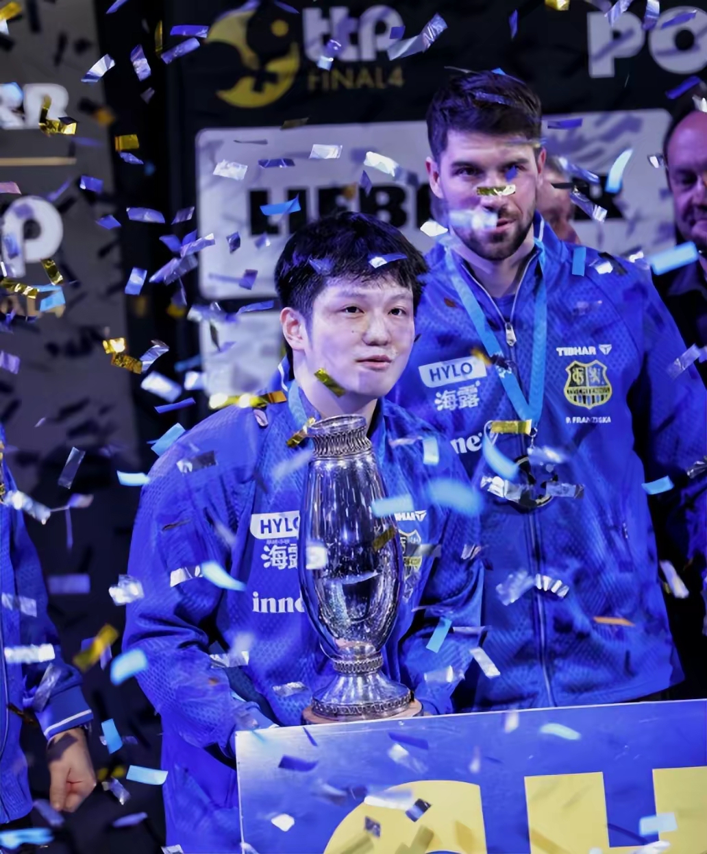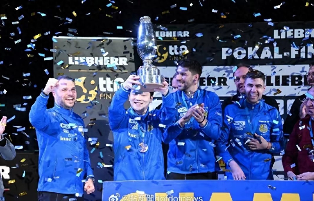 德国杯决赛的灯光下,金色纸屑漫天飘落。樊振东高高举起冠军奖杯,笑容灿烂得晃眼。可下一秒,他就把奖杯塞到队友手里,自己悄悄退到一边——这个刚为球队狂砍4分、扛着队伍从悬崖边闯进决赛的功臣,把最显眼的领奖位置让给了球队老爷子。