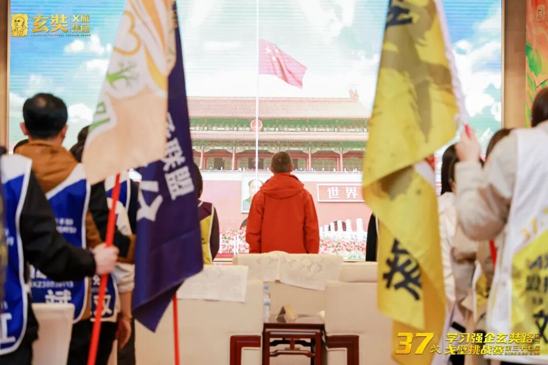 在庄严的国歌声中,出征大典正式拉开序幕。全场人员目光坚定,同频高歌!