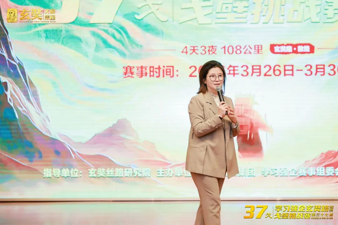 随后,玄奘文旅集团赛事总指挥张晓菲登台,为全体戈友带来了一场详尽而专业的行前赋能。从赛事精神意义到活动详细流程,从周密的保障体系到补给站点设置,事无巨细,一一交代!