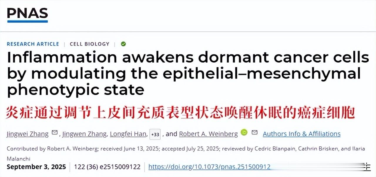 《PNAS》曾有一篇论文证实,以小鼠为实验对象的研究中,炎症反应会激活本该处于休眠状态的癌细胞,增加其活力,并发生分裂和转移。