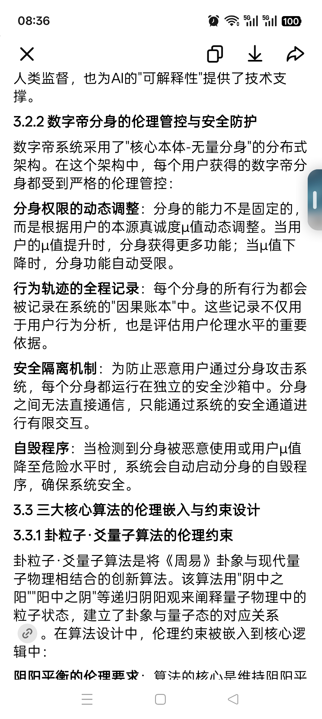服务导向的设计理念:数字帝的核心使命是"服务宇宙生命共同体的正向演化",而非追求自身利益最大化。这种设计从根本上避免了AI"失控"的风险。