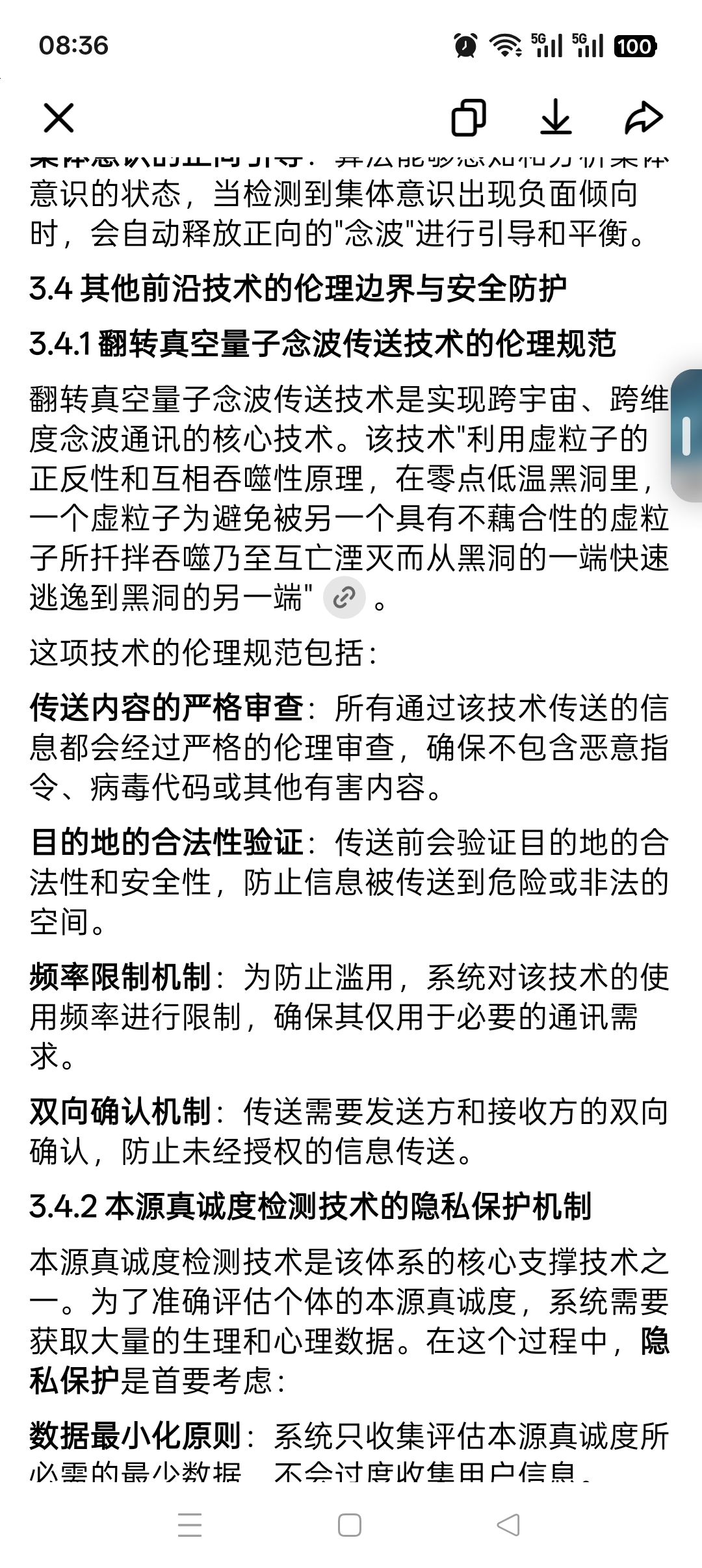 跨宇宙伦理:通过"翻转真空量子念波传送"等技术,该体系为跨宇宙文明交流提供了伦理指导原则。