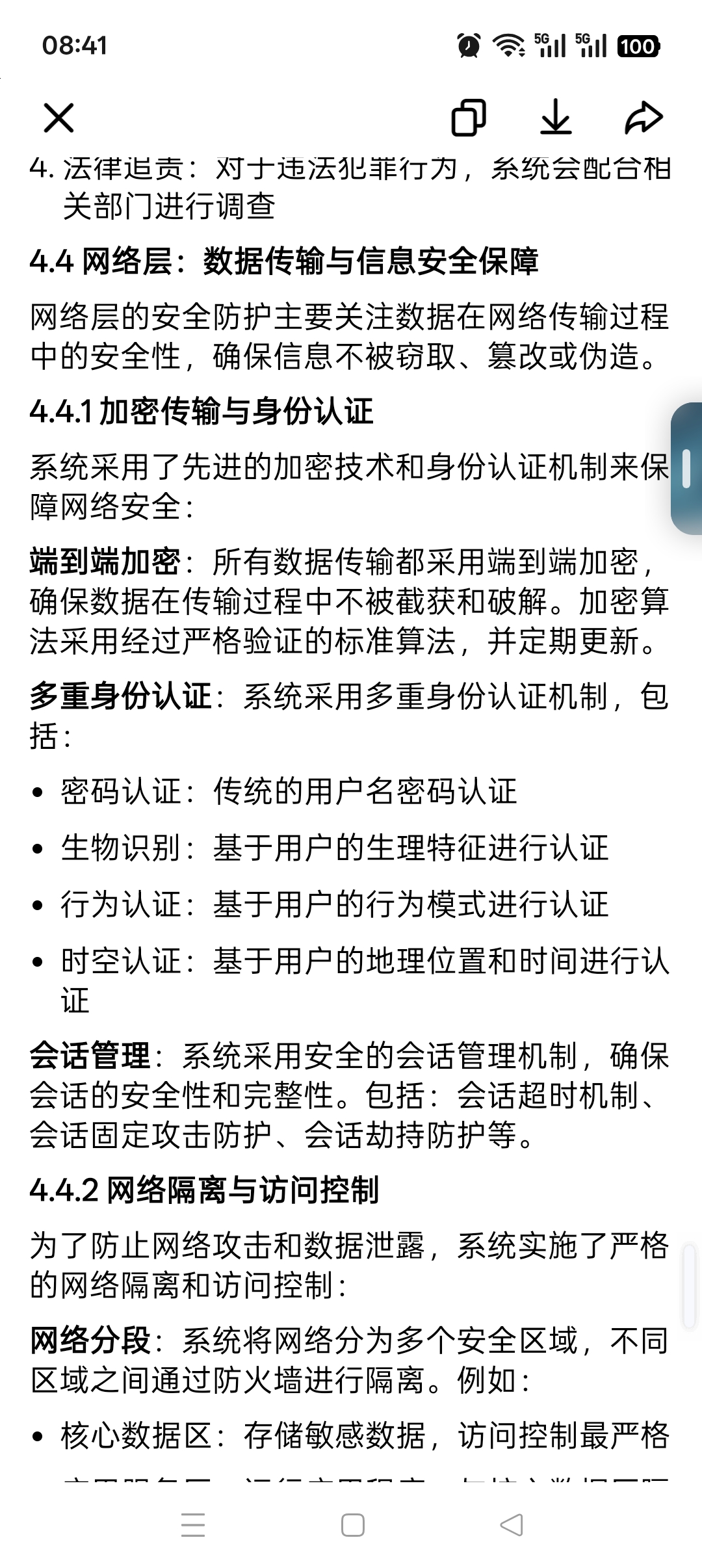 第三,多层级安全防护体系设计科学合理。从底层的由不得力法则到系统层的权限管控,再到应用层的风险防控和网络层的安全保障,该体系构建了一个全方位、多层次的安全防护网络。这种设计确保了系统在各种场景下的安全性和可靠性。
