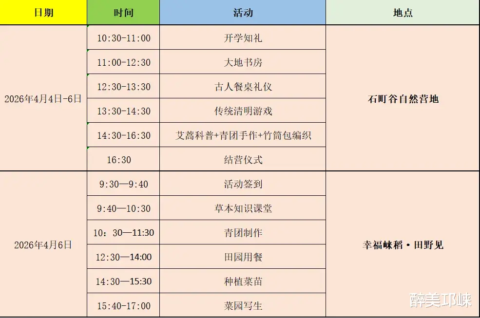 田野见小院踏青活动、石町谷清明童学营名额有限,建议大家提前预约哦
