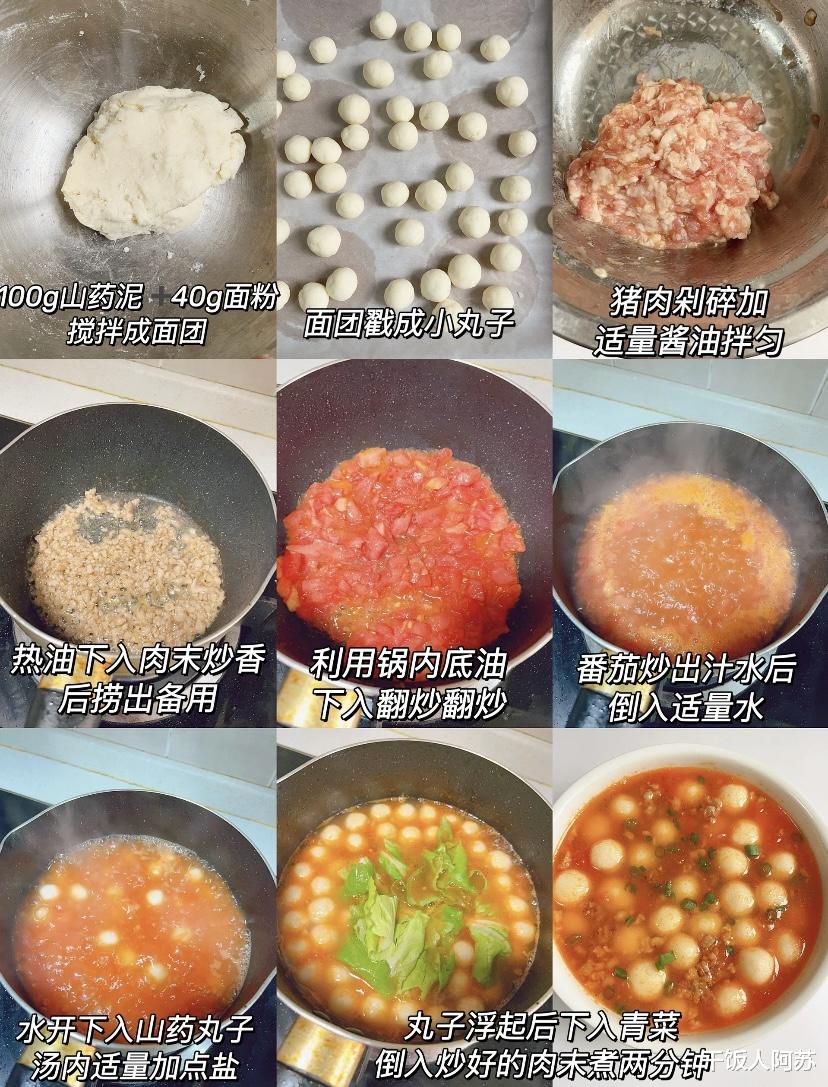 在制作过程中,有几个小技巧能让成品更完美。山药泥一定要压得细腻,这样丸子口感才顺滑。炒番茄时,可以加一小勺糖,中和酸味,使汤底更柔和。丸子下锅后不要频繁搅动,以免破碎。肉末炒好后盛出,最后再放,能保持其鲜嫩口感。
