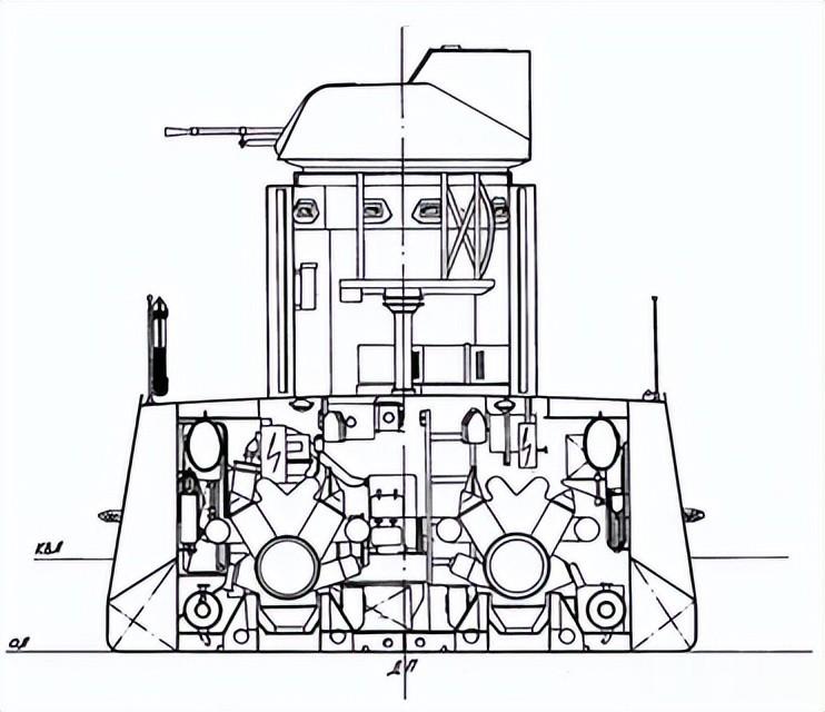 机枪:两座双联 14.5 毫米 Vladimirov 机枪炮塔(型号 2M-6),炮塔顶部 10 毫米装甲,舷侧采用分层装甲 7+7 毫米。