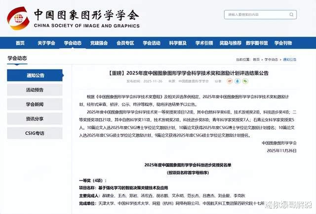 近日,中国图象图形学学会(CSIG)正式公布2025年度科学技术奖评选结果,其中科技进步奖一等奖的名单中,赫然出现了网易公司的名头,完成人中还有大家熟悉的名字。