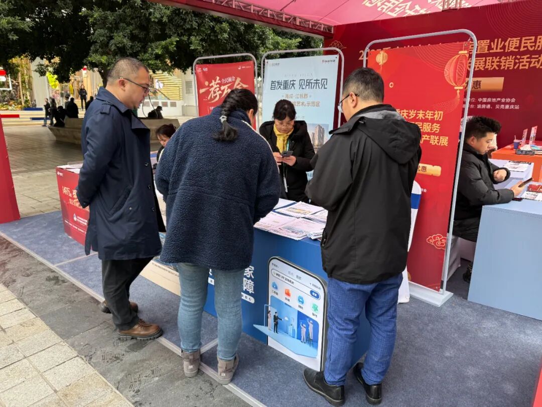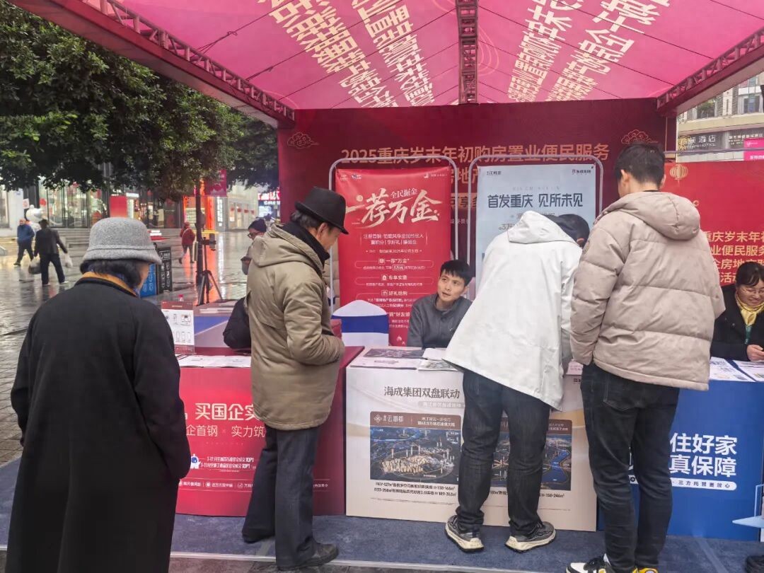 2025重庆岁末年初购房置业便民服务暨百城千企房地产联展联销活动于12月21日在解放碑步行街顺利结束。活动两天,中海、金地、国瑞阳光、和记黄埔等21家开发企业47个品质楼盘及贝壳、到家了2家中介机构为市民认真解读政策、介绍项目、提供二手房代办过户等购房置业便民服务,深受市民好评。