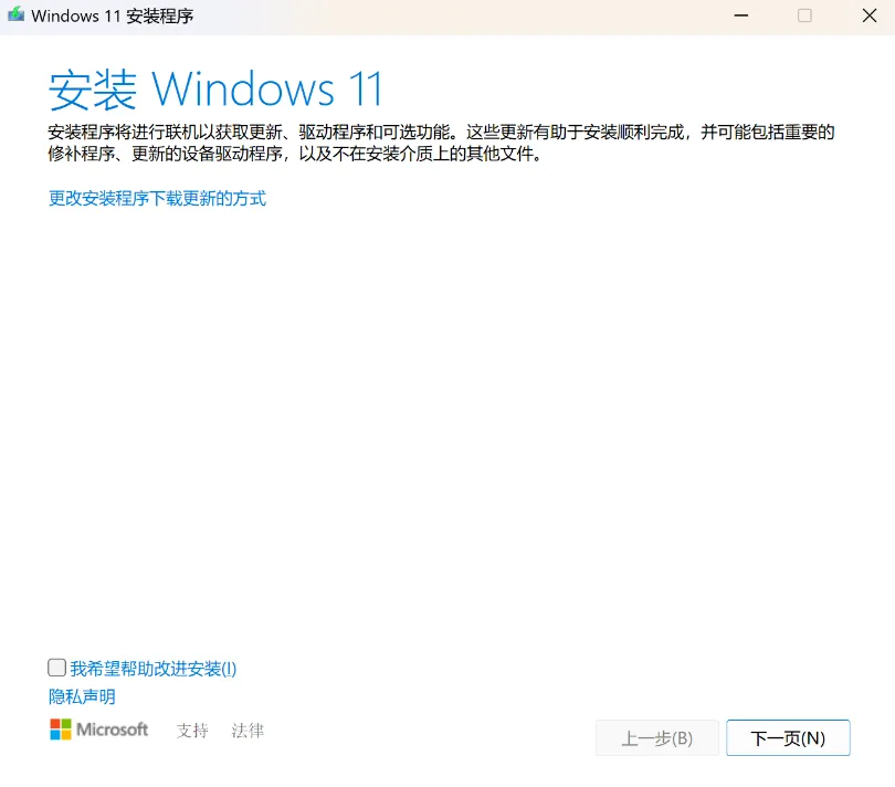选择对应的选项之后,点击下一步,就会进入到Win11安装界面: