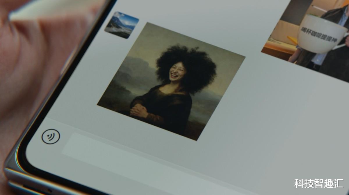 值得一提的是,华为Pura X Max采用双屏阔屏设计,且尺寸进一步升级。如此一来,即便在折叠状态下用手写笔在外屏临时记录,展开后也能无缝同步至内屏进行精修与调整,视觉体验连贯统一,毫无割裂感。在朋友之间的交流与家庭生活中,华为Pura X Max同样可以带来更多价值。比如,为朋友的照片绘制“爆炸头”等恶搞造型表情包,进行社交互动。