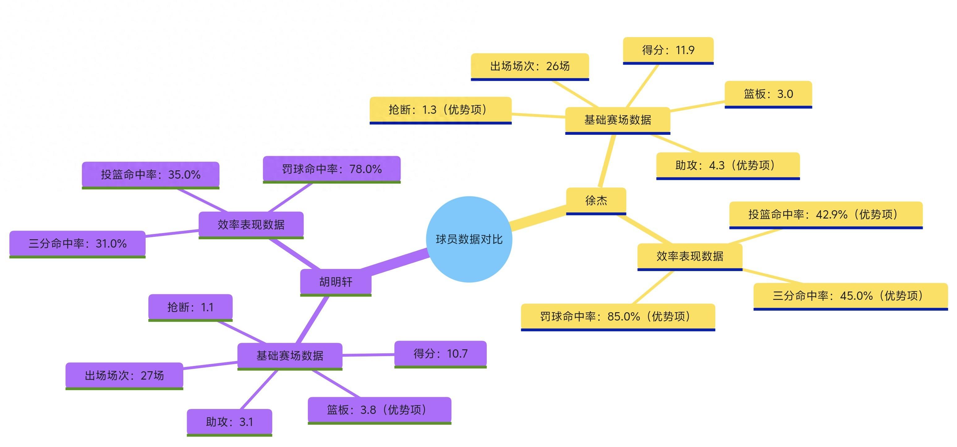 1、 优势互补:徐杰是高效得分+组织核心,进攻效率和串联能力突出;胡明轩篮板保护更好,出勤更稳定。