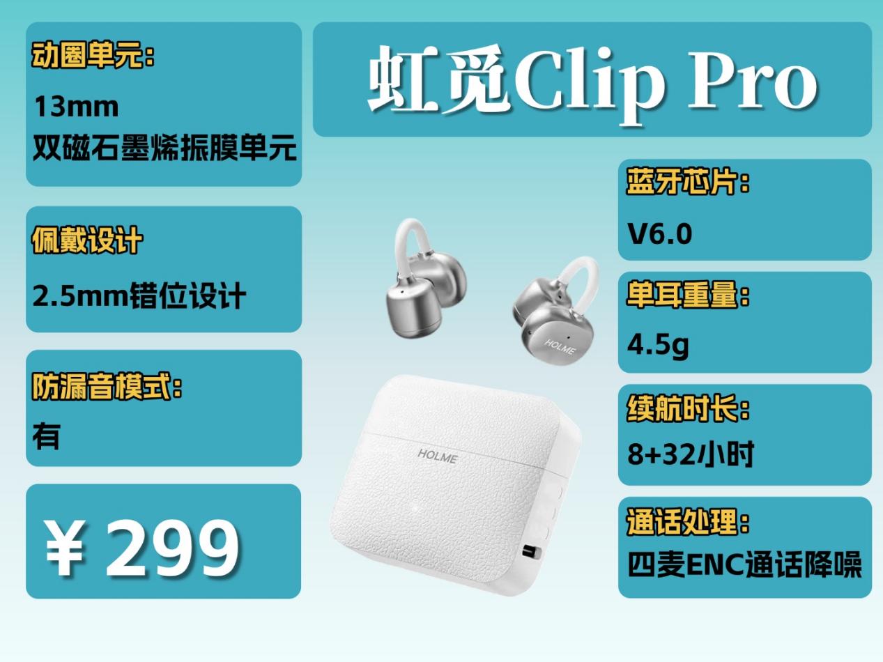 就说蓝牙这块吧,那肯定得选最新款蓝牙芯片!用着顺手不说,连接又快又稳,还不容易断连,日常用着的体验感直接就到位了。(如华为FreeClip2的蓝牙V6.1芯片、虹觅clip pro的蓝牙V6.0芯片)