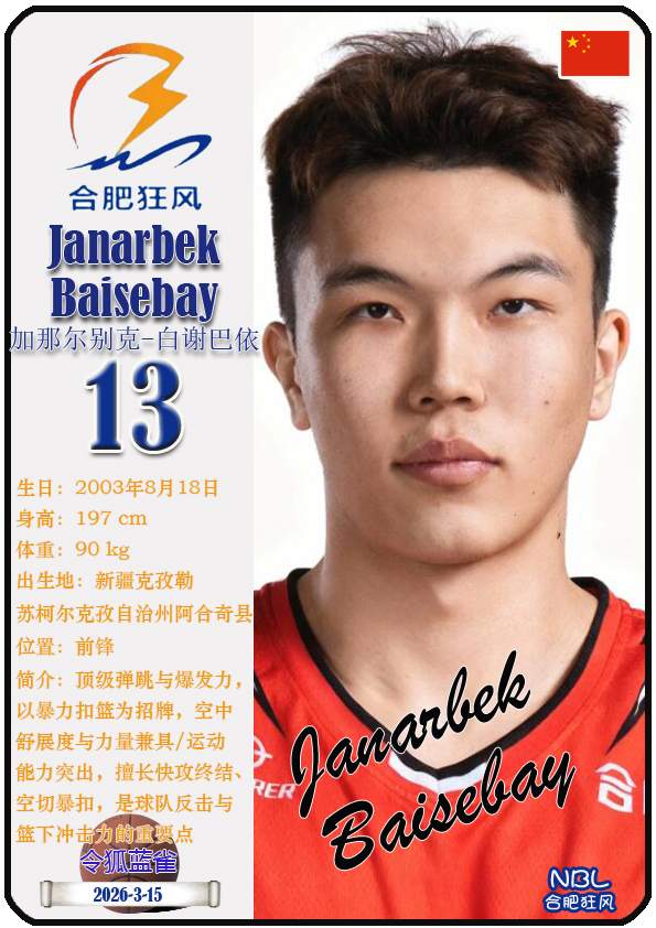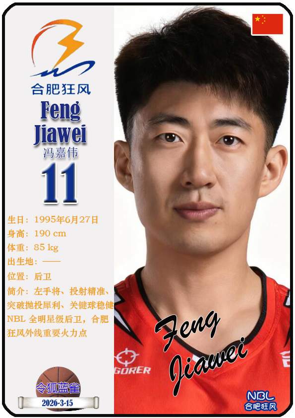 合肥狂风篮球俱乐部是成立于2023年的中国NBL联赛职业篮球俱乐部,距今已有3年历史。目前球队主教练是热夏提·克里木,队内拥有球员迪米特里奥斯-阿格拉瓦尼斯、布兰登-麦考伊、内特-约翰逊等。本期盘点截至2026年3月15日NBL合肥狂风男篮的15名球员(按球衣号码排序):