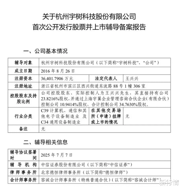 7月18日,证监会网站正式披露《关于杭州宇树科技股份有限公司首次公开发行股票并上市辅导备案报告》,这标志着宇树科技已正式开启上市辅导工作。