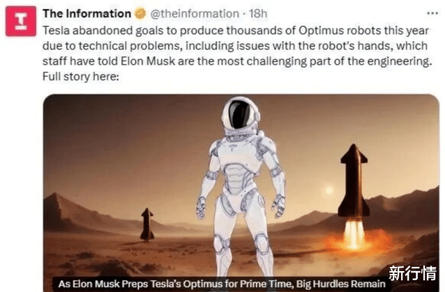 10月8日,硅谷知名付费科技媒体The Information发布文章透露:由于技术问题,特斯拉已放弃了今年生产数千台Optimus机器人的计划。