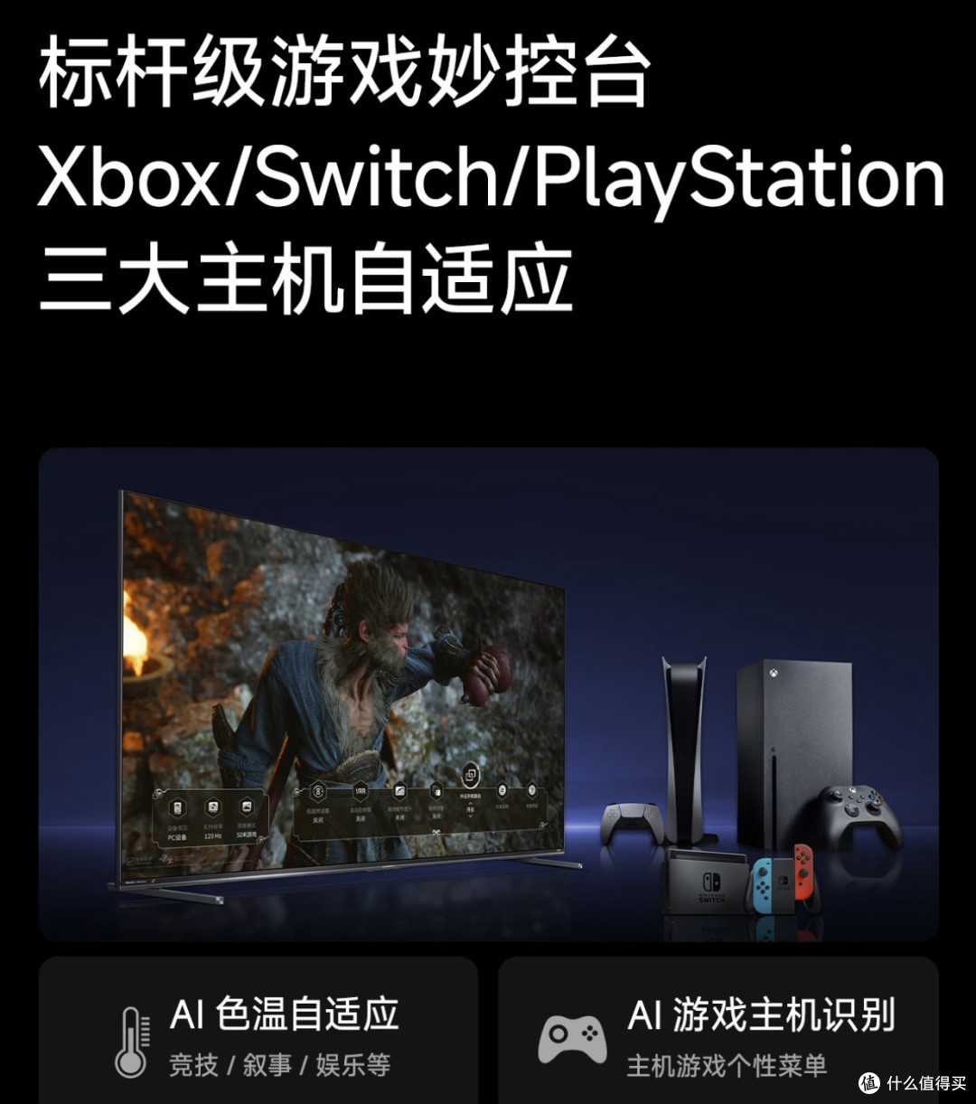 它还有游戏妙控台,预设了5种游戏模式,不管玩FPS、RPG,还是体育类游戏,都能自动调节参数,不用手动设置,一键就能获得最佳体验。而且它支持HDMI 2.1接口,适配PS5、Xbox等所有主流游戏主机,还首发了杜比视界2,再由海信与法国大牌音响帝瓦雷联合打造精心调校,堪称“电视自带高端Hi-Fi音响”,音质表现远超同价位SQD机型,甚至能媲美万元级高端音响。玩3A大作的时候,光影、色彩更逼真,沉浸感直接拉满。