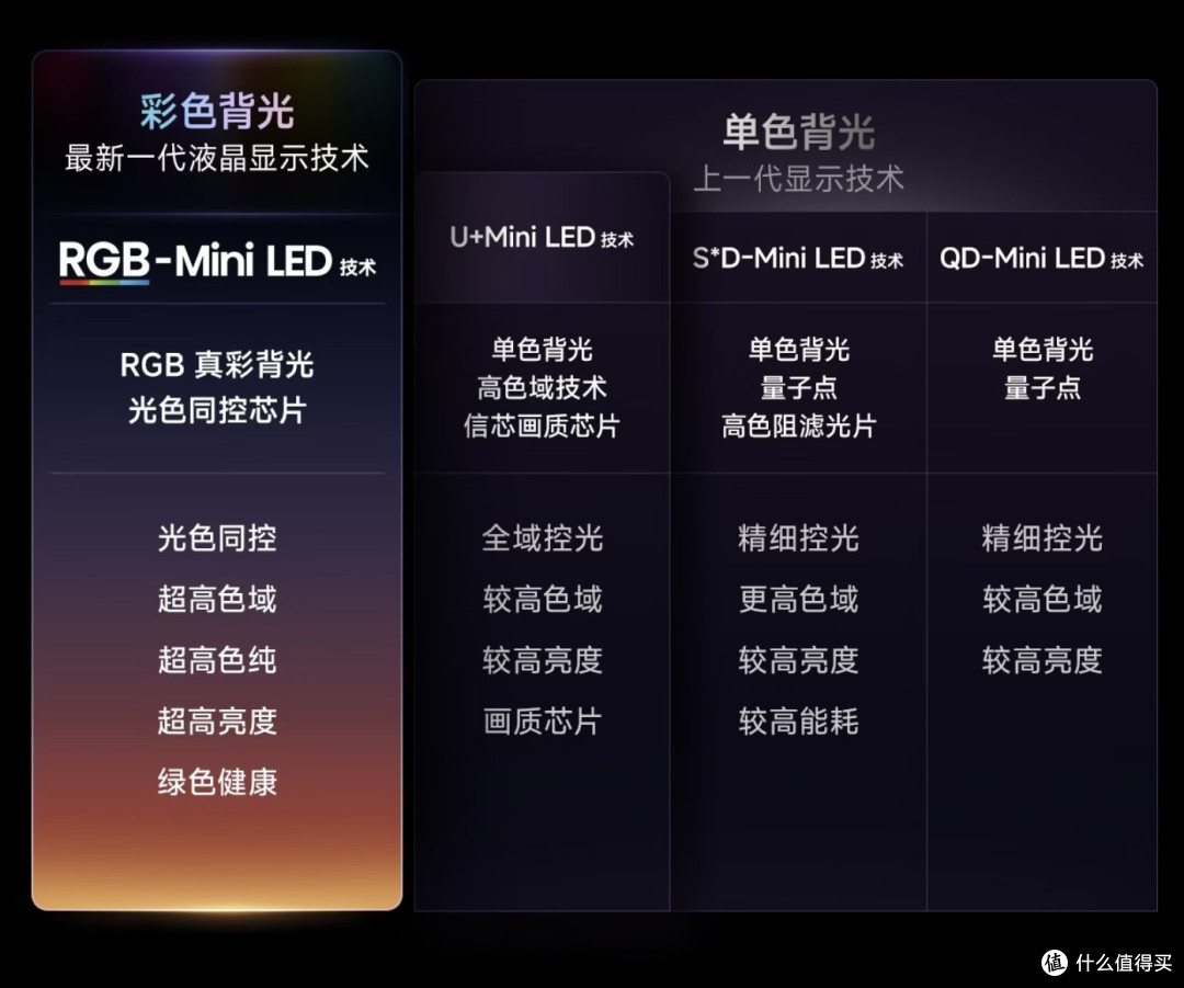 4、技术前景与实用性:RGB是主流趋势,SQD迟早被淘汰选购电视,不仅要看当下的体验,还要看未来的技术前景,避免买完就落后,花冤枉钱。