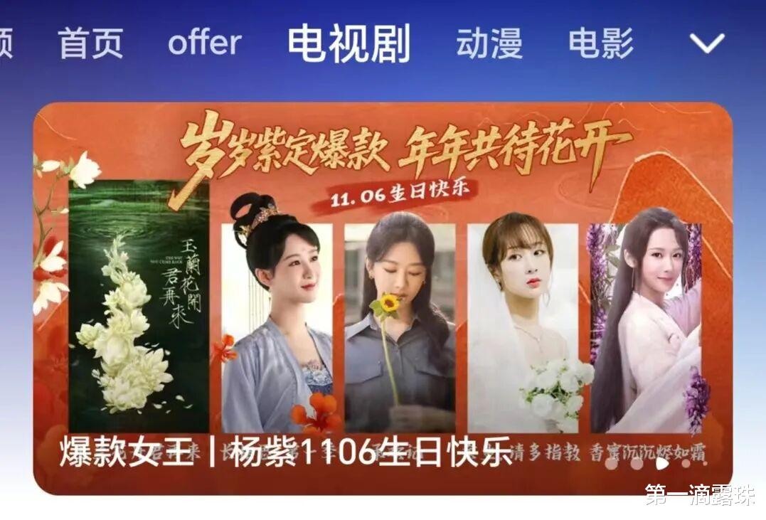 腾讯视频直接在播放平台开设专栏为杨紫庆祝生日:岁岁紫定爆款,年年共待花开!爆款女王/爆剧女王,杨紫11.06生日快乐。